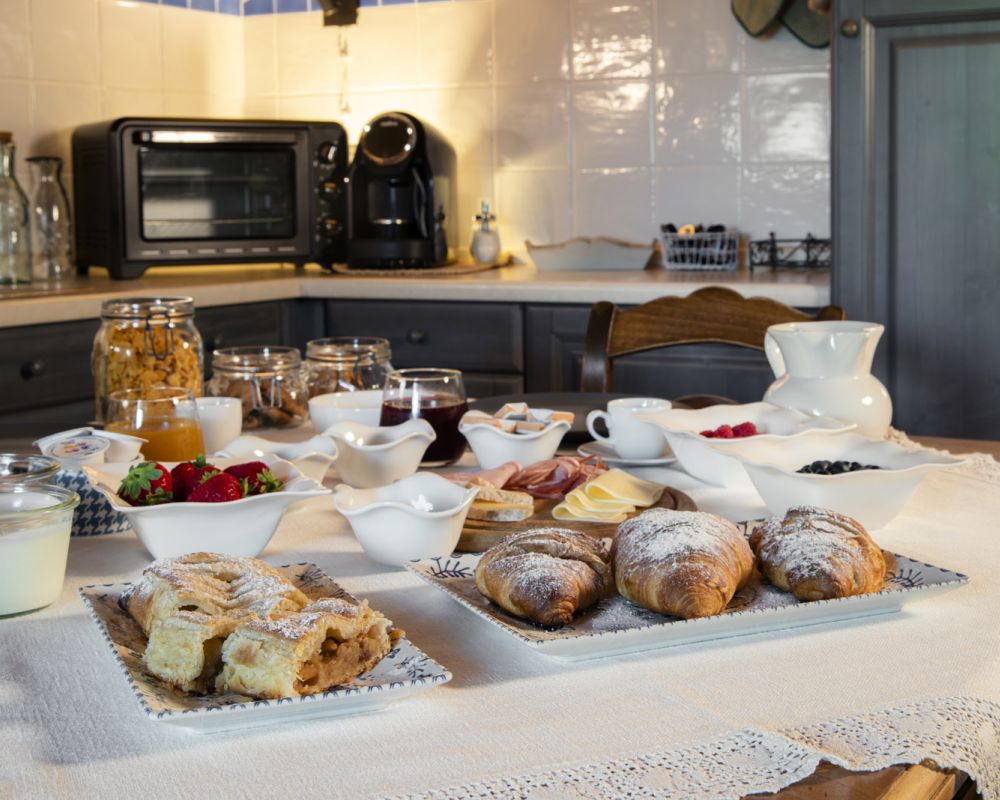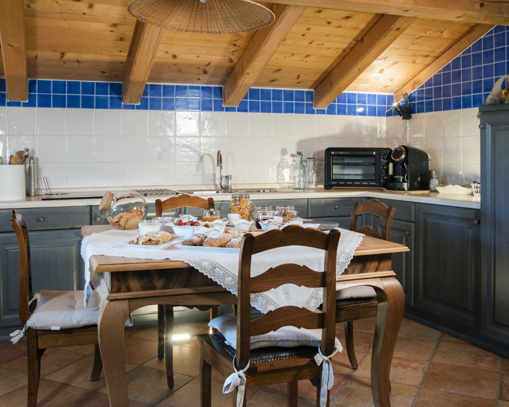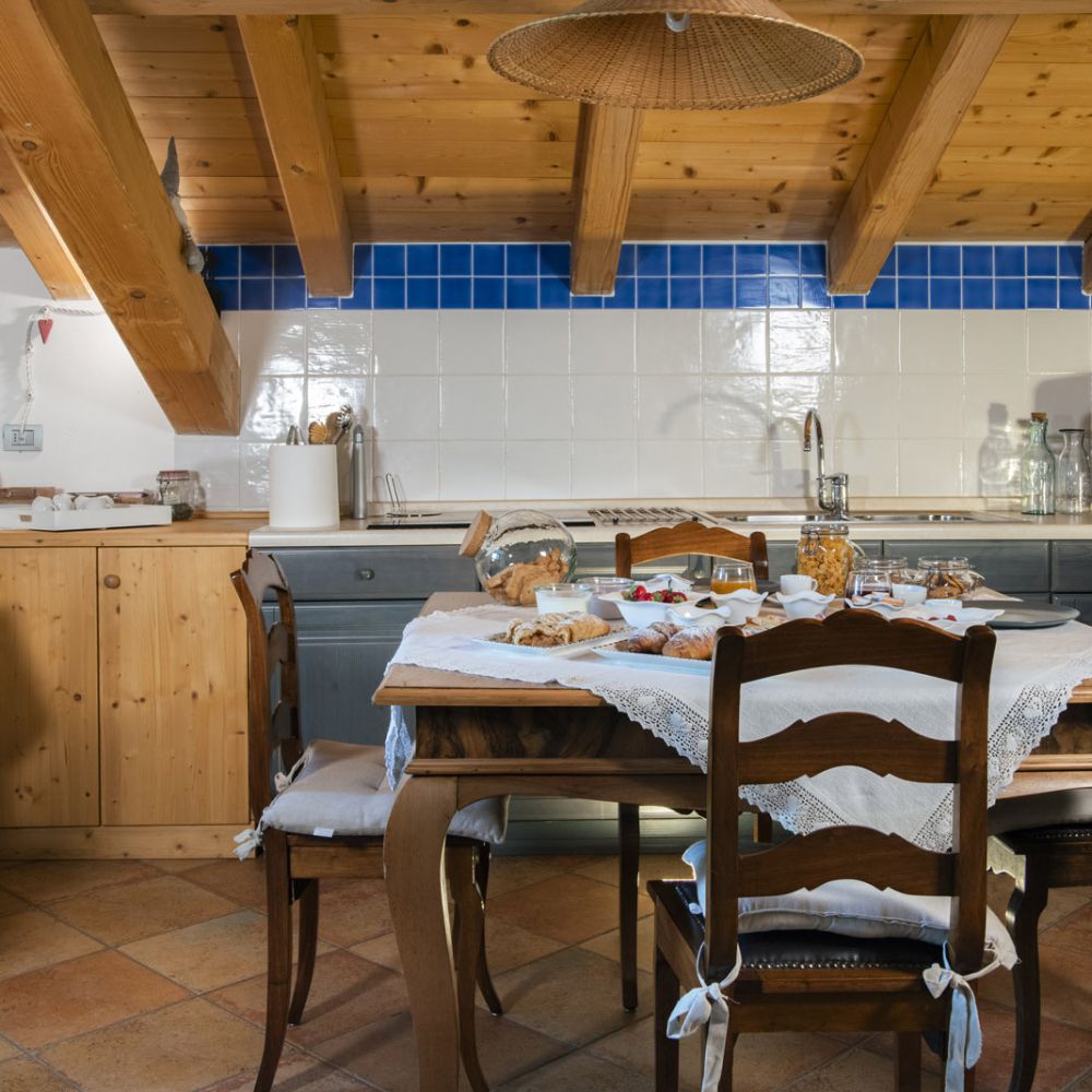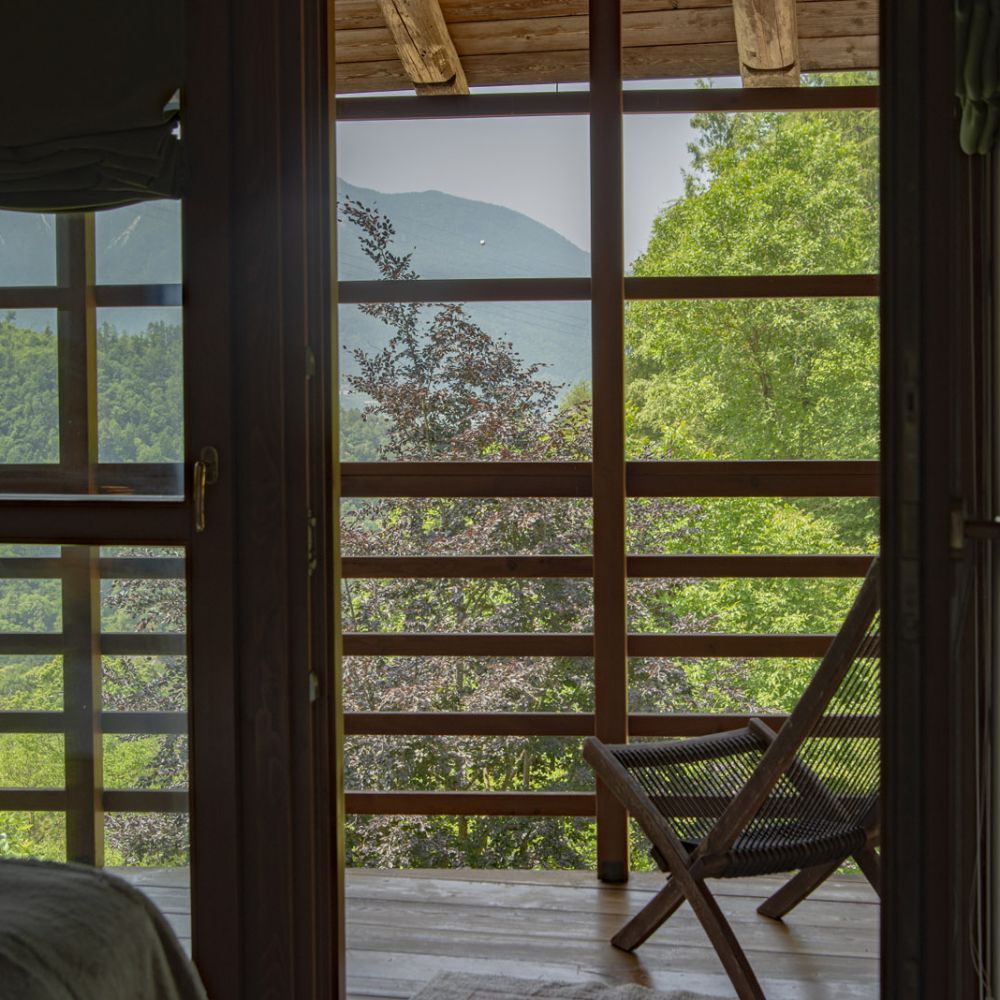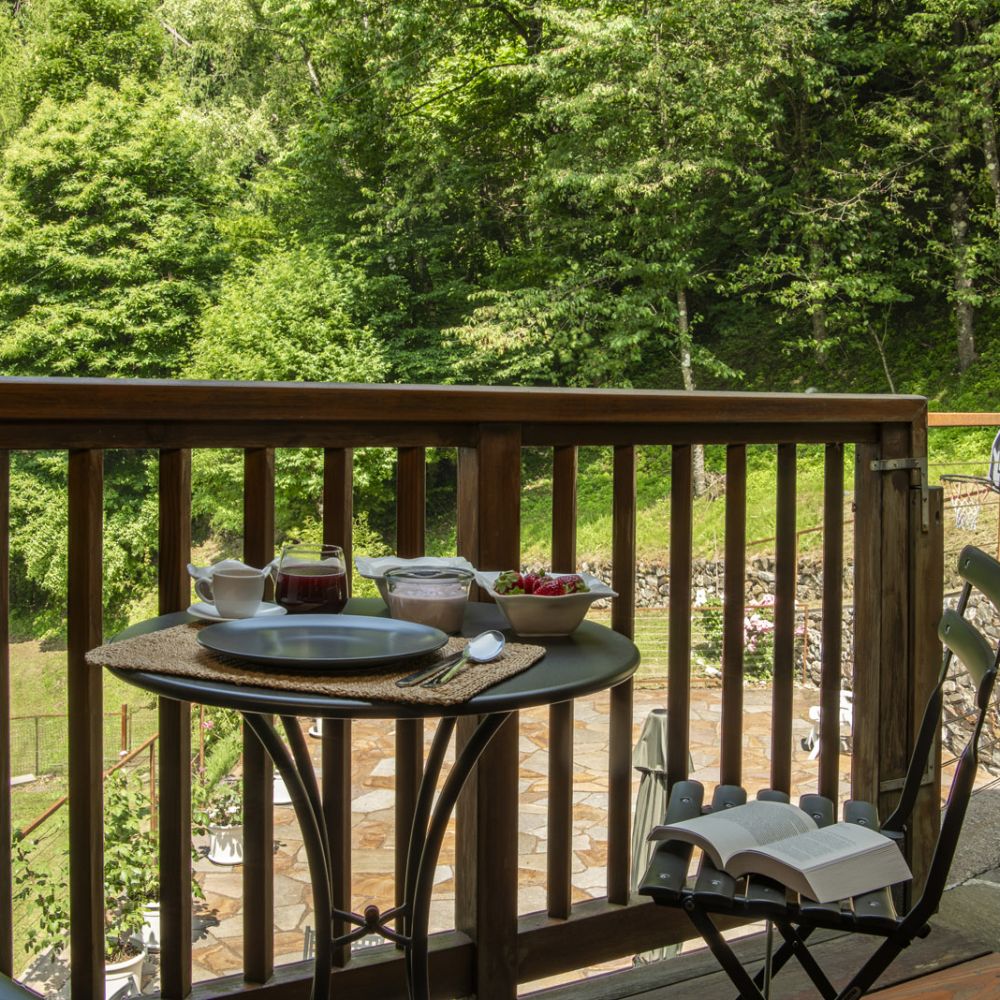 Dal terrazzino in legno potrai ammirare boschi e montagne, rilassarti sotto il sole o leggere in assoluta tranquillità. La cucina ti accoglie con profumi di dolci fatti in casa e colazioni genuine, per iniziare la giornata con energia e serenità