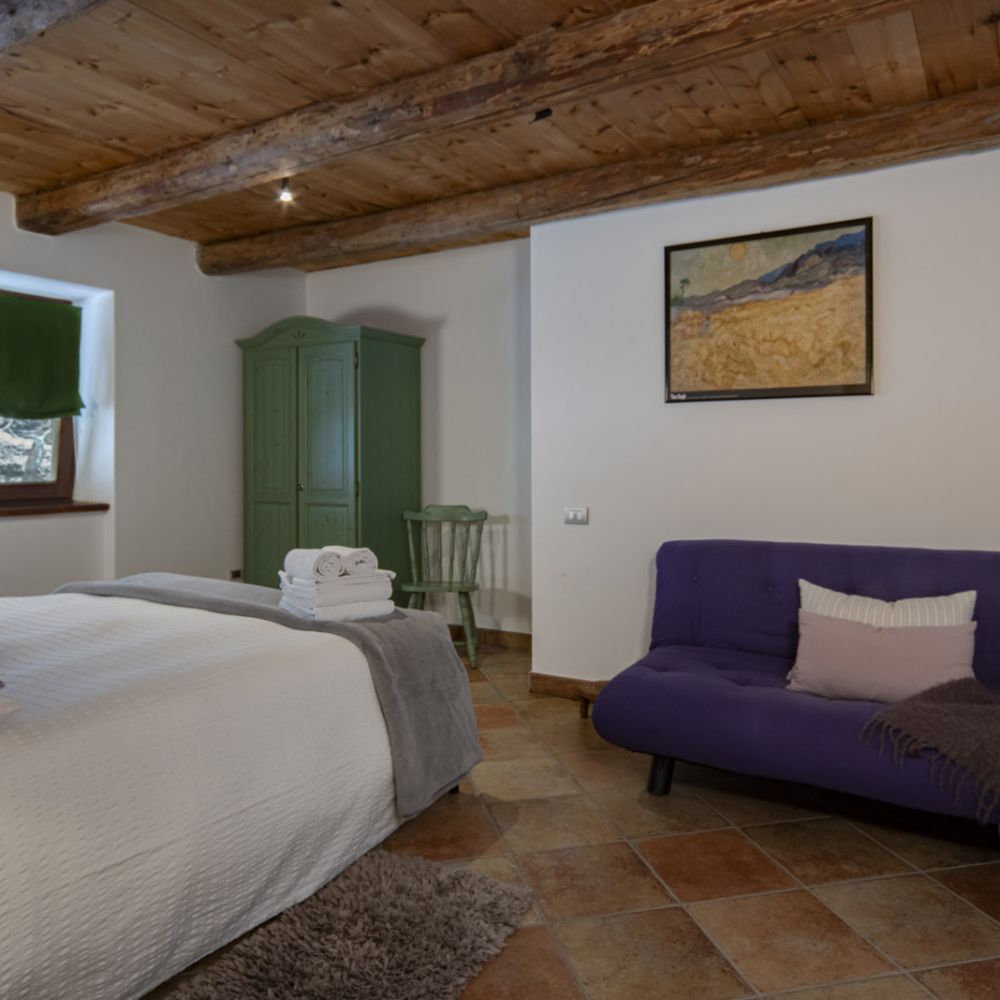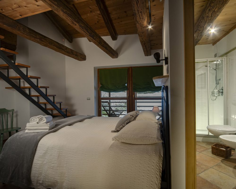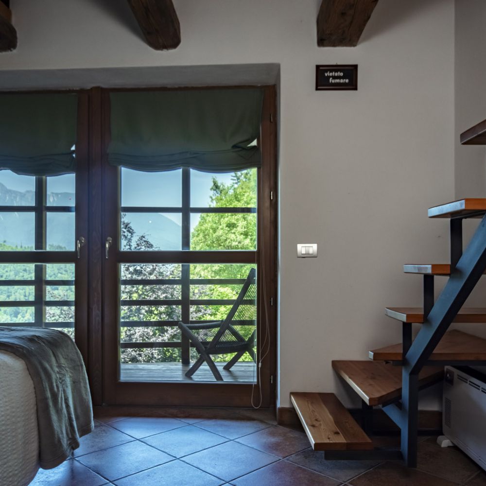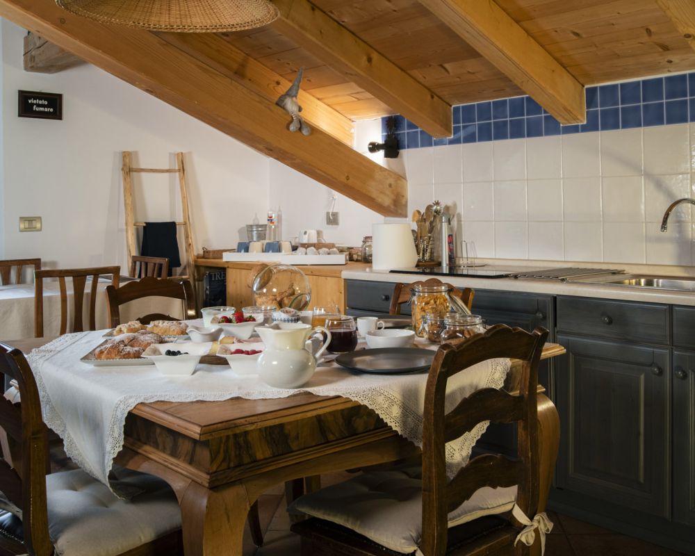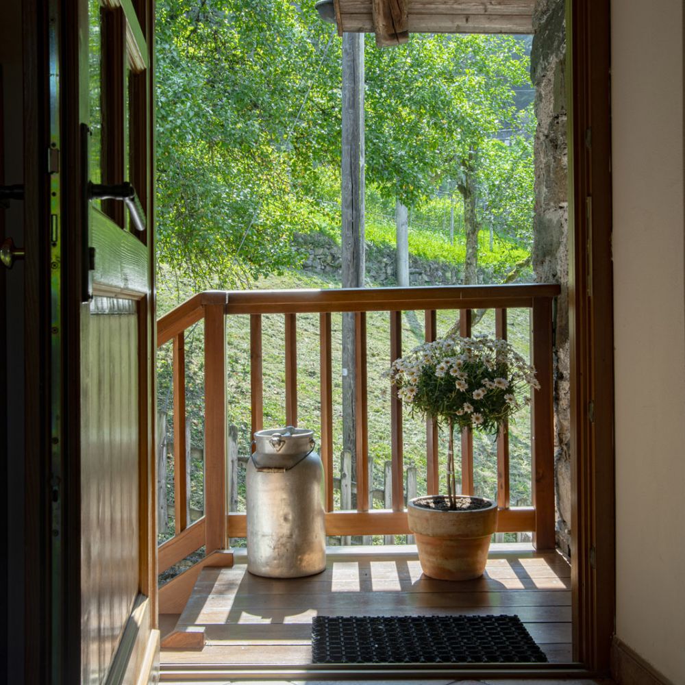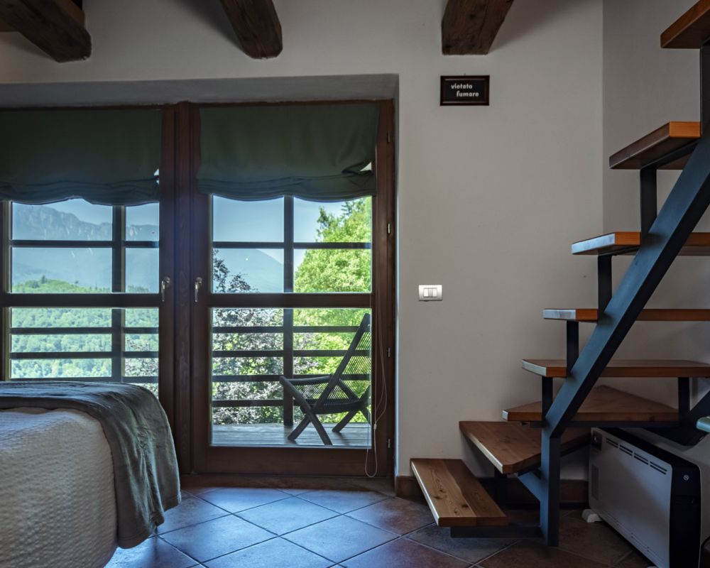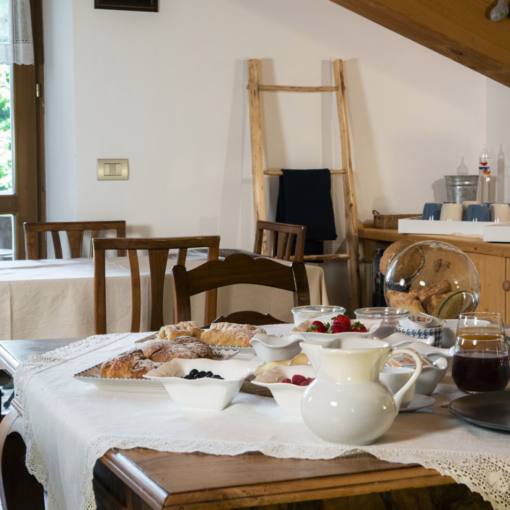 Dal terrazzino in legno potrai ammirare boschi e montagne, rilassarti sotto il sole o leggere in assoluta tranquillità. La cucina ti accoglie con profumi di dolci fatti in casa e colazioni genuine, per iniziare la giornata con energia e serenità