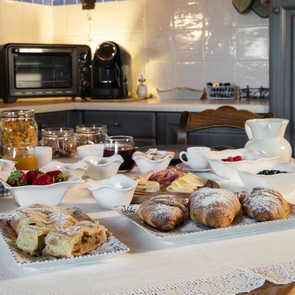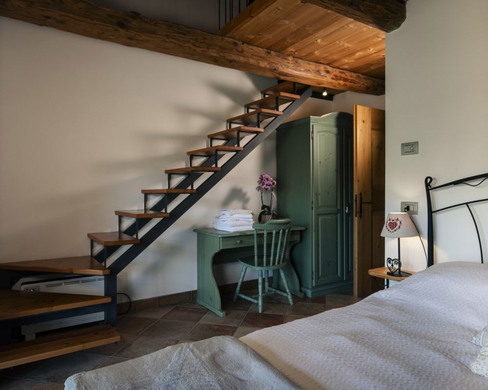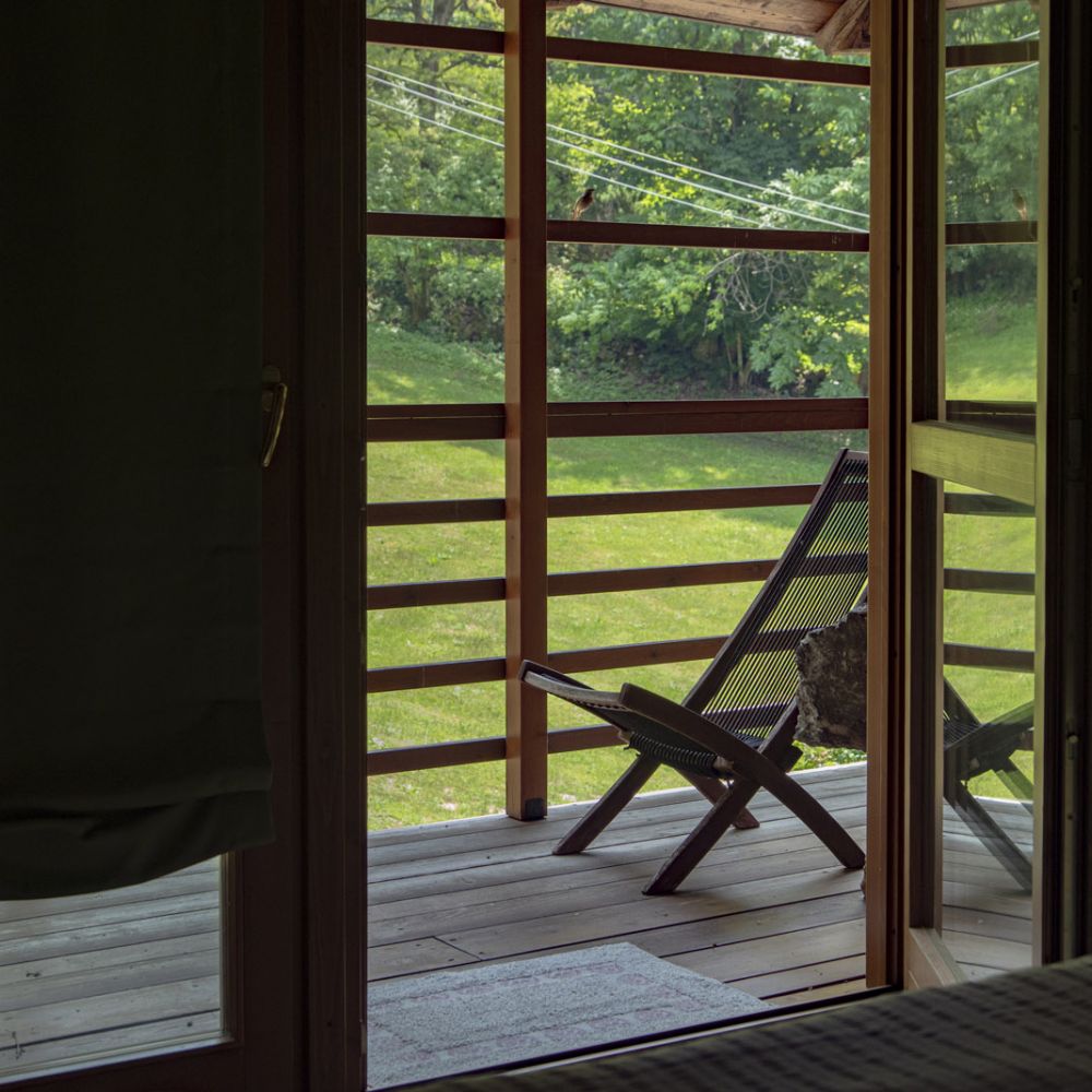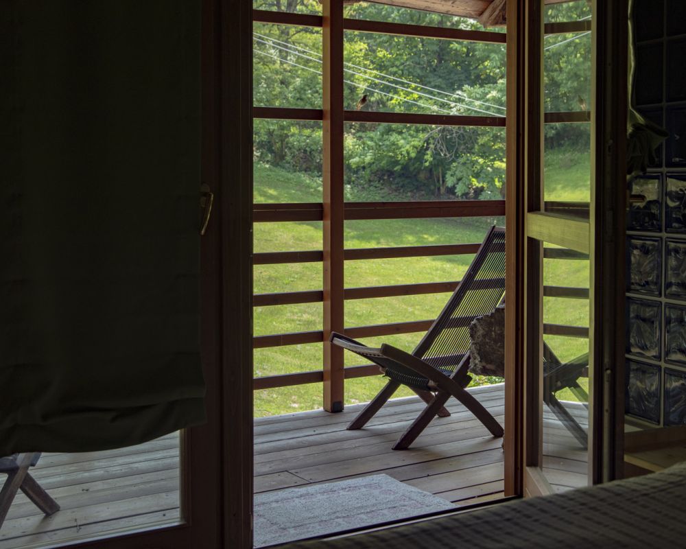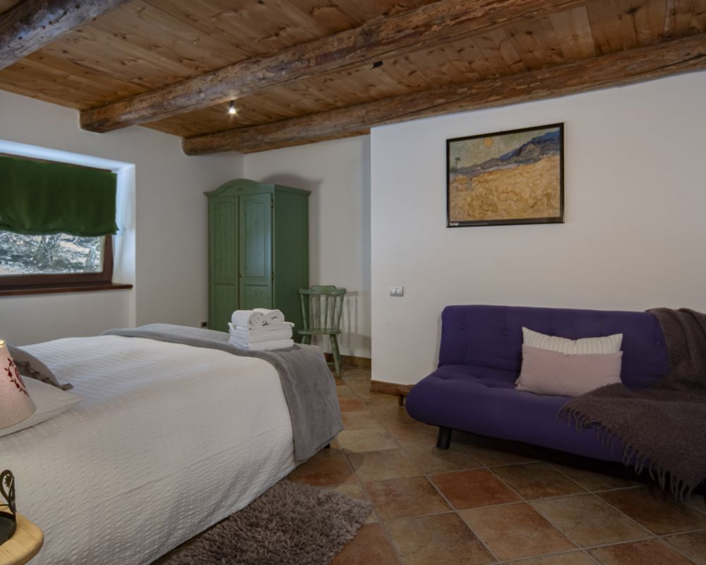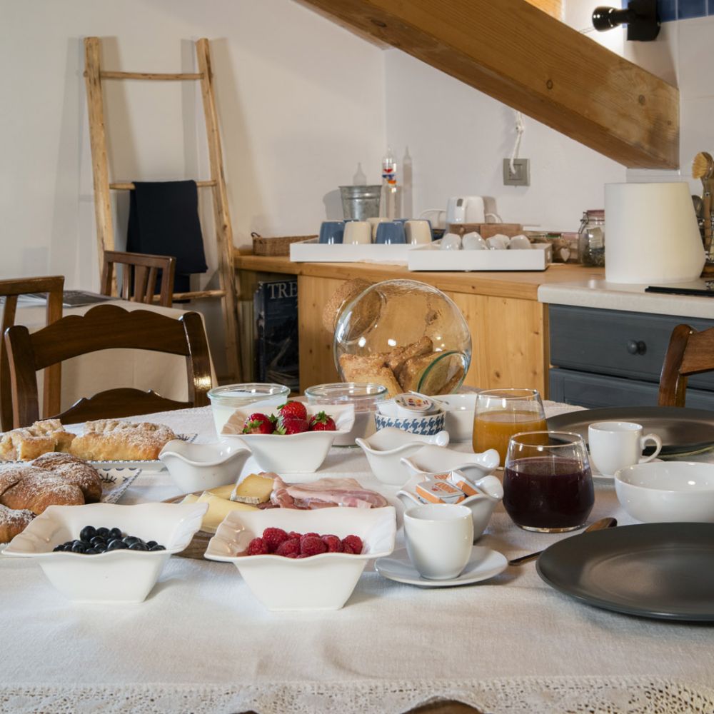 Dal terrazzino in legno potrai ammirare boschi e montagne, rilassarti sotto il sole o leggere in assoluta tranquillità. La cucina ti accoglie con profumi di dolci fatti in casa e colazioni genuine, per iniziare la giornata con energia e serenità